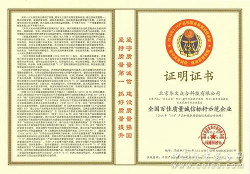 華文眾合獲全國百佳質量誠信標桿示范企業稱號
