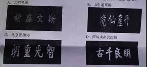 問:許多名勝古跡都有名人題寫的匾額,這些匾額上的字具有較高的書法藝術價值,但有的字卻不符合現代規范漢字的書寫要求。下列匾額屬于這種情況的一項是(