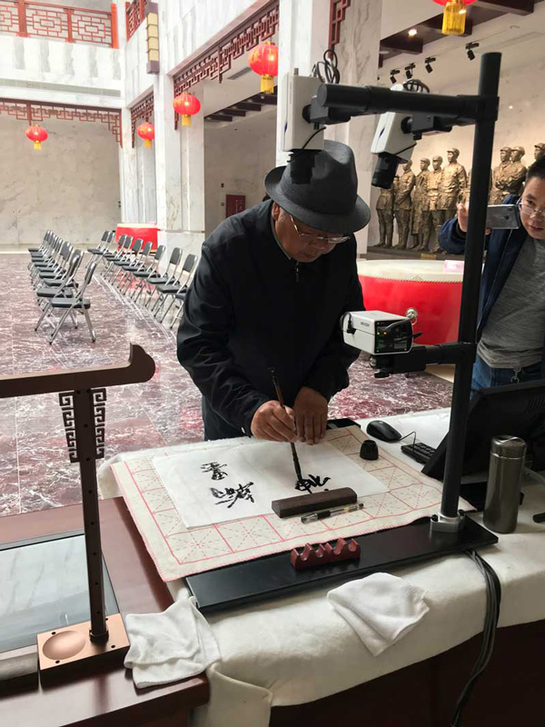 華文眾合應邀攜第五代智慧書法教室前往參展。中國美術(shù)家協(xié)會副主席王書平、菏澤李榮海美術(shù)館名譽館長李榮海等領(lǐng)導蒞臨華文眾合智慧書法教室展位,對其功能、特性經(jīng)過體驗、了解后,紛紛表示極大的肯定和贊揚。
