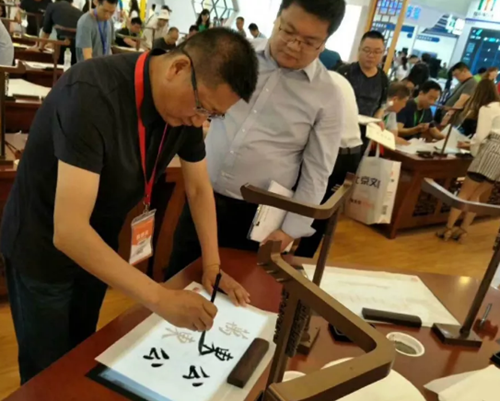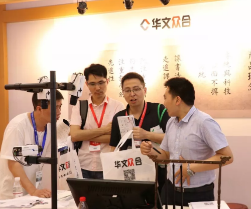 華文眾合此次展出的新產(chǎn)品——第五代智慧書法教室充滿古韻,同時又不失現(xiàn)代科技感,深受廣大觀眾喜愛。