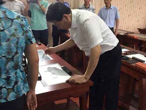 8月29日,江西省景德鎮市委常委、市委書記、軍分區黨委第一書記鐘志生在相關部門負責人的陪同下,在景德鎮二中參觀了華文眾合第五代智慧書法教室,即興潑墨揮毫體驗后,鐘志生針對該設備的教學先進性、產品易用性以及教學資源的豐富性方面給予了高度贊揚。