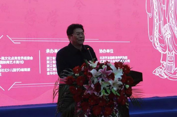 金華市教育局黨委書記、局長樓偉民致歡迎辭。樓偉民表示,早在2010年,金華就在全市中小學(xué)生中開展“讀國學(xué)經(jīng)典,做道德少年”活動,今年全市教育工作會議又提出了要推動國學(xué)教育“普及化”。懇請所有參會人員齊心協(xié)力,群策群力,共同打造全國國學(xué)教育交流大平臺。