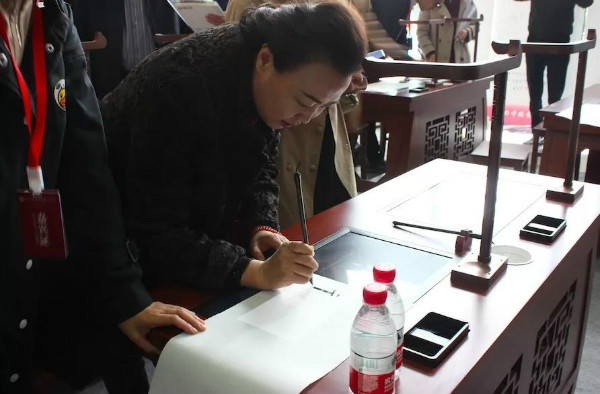 作為國學(xué)精粹的傳統(tǒng)書法文化是此次會議的熱門議題,會議期間展出了華文眾合第六代智慧書法教室。參會領(lǐng)導(dǎo)及嘉賓駐足參觀、體驗(yàn),興致高昂。