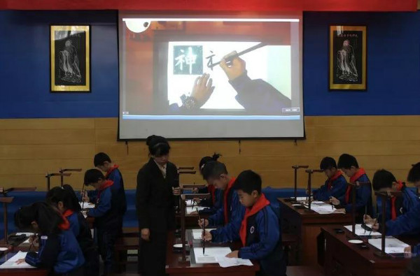 22日上午,2019全國國學(xué)教育大會分論壇——智慧書法論壇在浙江師范大學(xué)附屬小學(xué)教育集團(tuán)舉行,浙師大附小教育集團(tuán)中圣學(xué)校的程靜老師和孩子們利用華文眾合智慧書法教室為大家展示書法觀摩課。