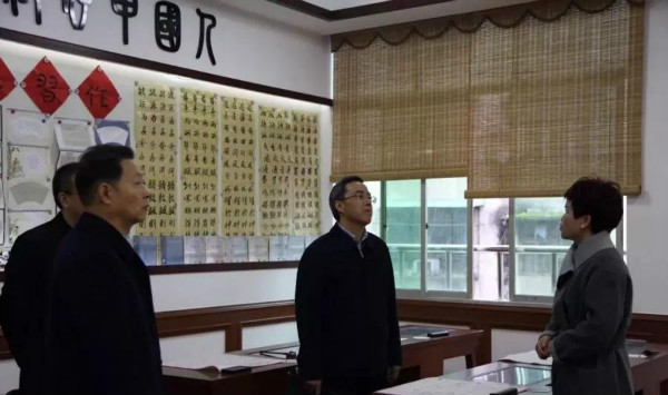 重慶市合川區(qū)區(qū)委書記李應(yīng)蘭(中)一行華文眾合智慧書法教室