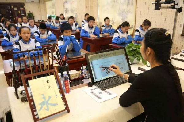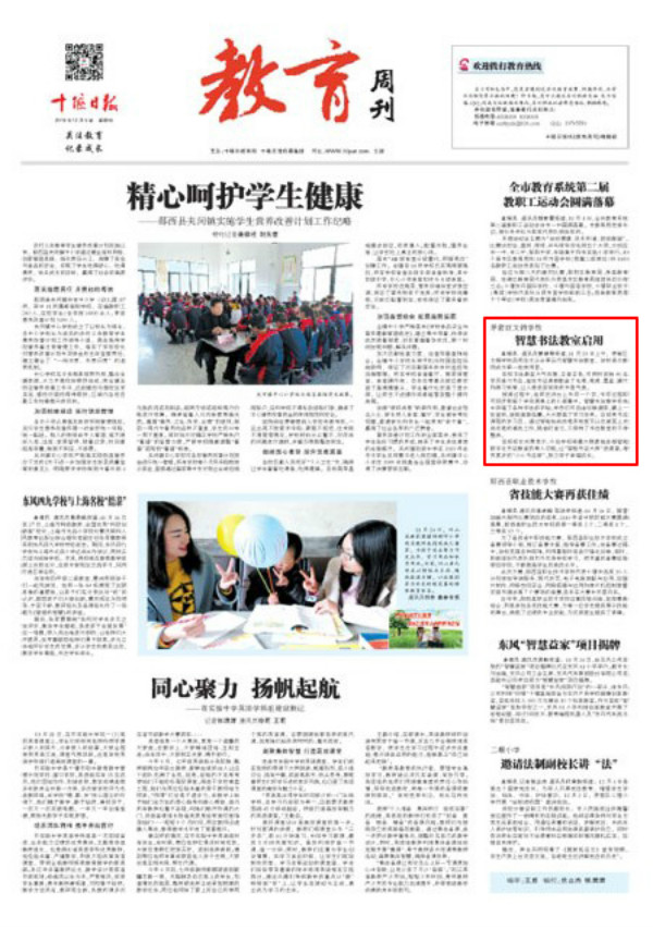 近日,湖北省十堰市文錦中學啟用華文眾合智慧書法教室,獲《十堰日報》報道。