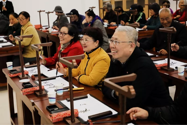 在智慧書法教室,老同志們饒有興致地提筆行文,感受現(xiàn)代科技賦予古典書法藝術(shù)的新體驗(yàn)。當(dāng)看到筆法演示和個(gè)人作品實(shí)時(shí)傳輸至大屏幕時(shí),老同志們對(duì)高超的科技、先進(jìn)的設(shè)備贊不絕口。