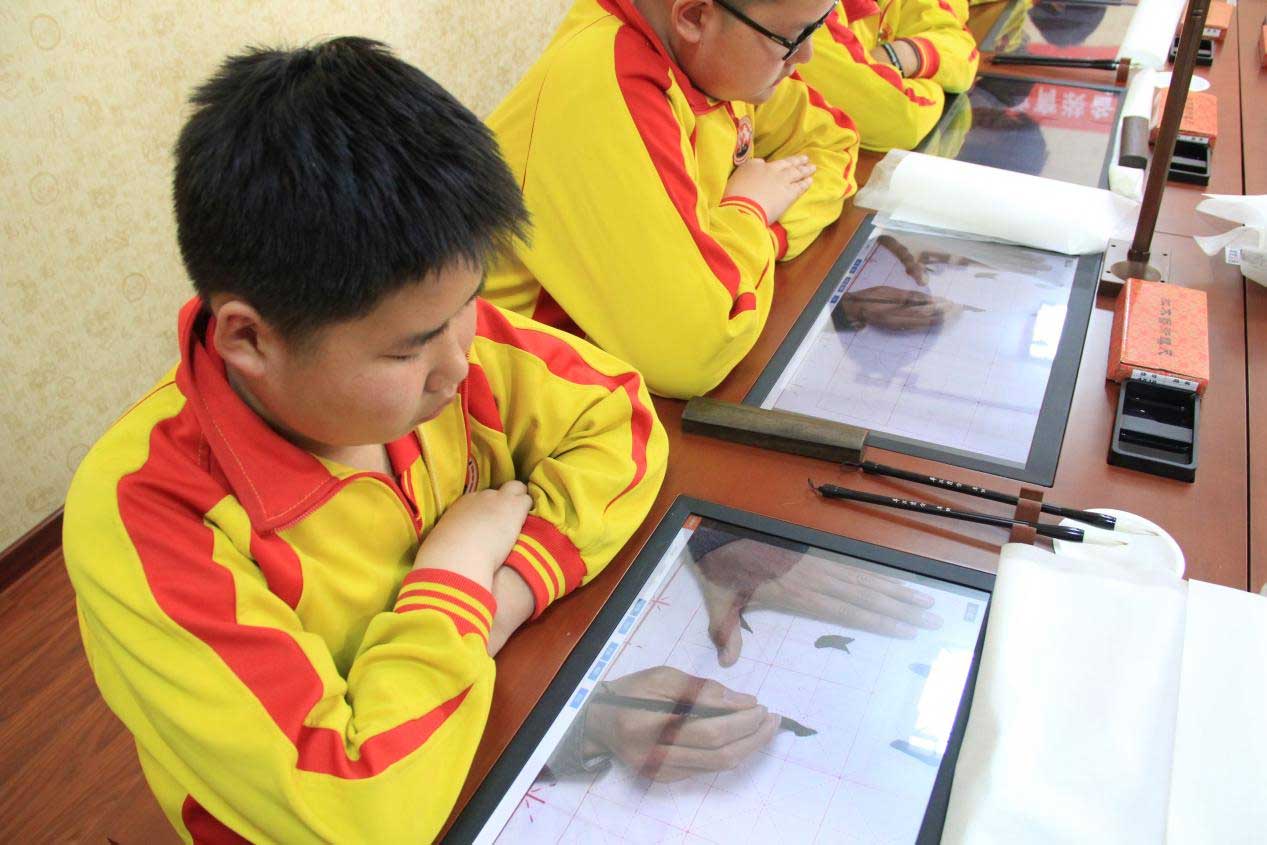 北京一中暨超老師通過智慧書法教室給學生們上了一節基于北師大版教材的《點畫》現場觀摩課。首先,暨老師通過智慧書法教學系統的字帖排版,排列了各種書體的點畫電子字帖,分析點畫的形態特征;通過系統的視頻資源庫平臺調取了各種書體的多種點畫專家書寫視頻,引導學生通過觀察、觀看名家示范;隨后,暨老師還通過多目書畫教學展示臺,給學生從多個視角做了現場書寫示范,學生通過交互式數字臨摹臺近距離的觀察暨老師書寫時的運筆細節;同時還進行了基于點畫的單字“玉”字的學習,從智能課程平臺展示了基于“玉”字的筆順動畫、行筆路線、書體對比等方面;最后,暨老師讓學生對授課所學的點畫例字,進行臨摹練習,其中運用了“邊看邊練”和“六步臨摹教學法”,練習的過程和結果,通過學生端的互動系統,直播到大屏和學生端的交互式數字臨摹臺,進行實時的點評和糾錯,最終實現了信息化技術跟傳統書法教學的有效結合,大大的激發了學生的學習興趣,提升了教學效率和效果。