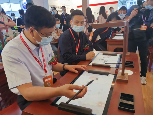 每一次亮相,都別出心裁;每一次駐足,都值得留戀。高端大氣的展臺,巧思匠心的設計產品,吸引了眾多參觀者駐足觀看和深入交流。近年來,隨著國家對書法教育的日益重視,頻頻出臺相關文件,指出書法教育對學生發展的重要意義,要求嚴格落實相關政策。全國各省也紛紛效仿,出臺政策推動書法發展,全社會出現“書法熱潮”。有網友稱,書法的時代來了!沒錯,這個時代,書法的發展正是人民的需要!