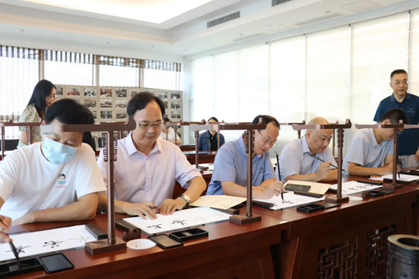 考察現場,譚明悅一行對華文眾合的企業發展態勢及企業文化進行了深度了解,充分肯定了華文眾合“眾心合力,弘揚華文”的企業初心。譚明悅一行提到,華文眾合出品的公益影片《覺醒青年》具有十分積極的教育意義和社會影響。向大鳳表示,華文眾合一直致力于公益事業,在推進書法教育、傳承傳統文化的同時始終不忘積極承擔社會責任。