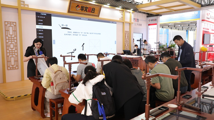 觀眾對華文眾合智慧書法充滿好奇與熱情,紛紛前來體驗。現場書寫,AI 即時生成專業測評,感受智慧書法教學的魅力。