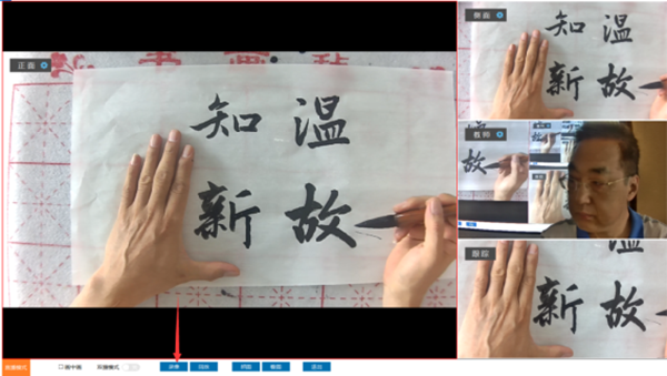 筆尖跟蹤四機(jī)位書畫教學(xué)展示臺在原有基礎(chǔ)上增加1臺跟蹤攝相機(jī),跟蹤攝相機(jī)能時(shí)時(shí)跟蹤拍攝教師在書寫示范過程中的沾墨、刮筆、握筆、筆尖形狀、運(yùn)行路線等,支持系統(tǒng)中軟件調(diào)焦。