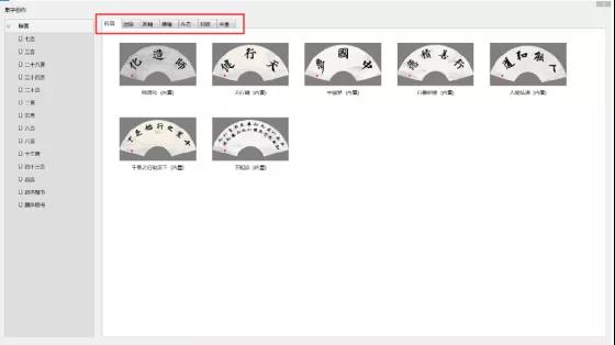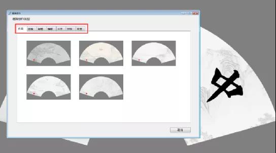 (2)選擇練習模板,有扇面、團扇、條幅、橫幅、斗方、對聯、中堂。模板為內置模板樣式,可自行編輯保存。