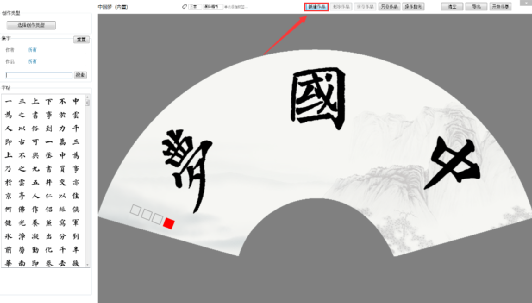 (4)選中例字,在模板上合適位置放置例字;系統會根據模板的不同自動調整字的角度,左鍵選中拖動可移動例字,滾動鼠標滾輪可縮放例字;調整合適后,再選擇第二個字,將自動匹配第一個例字的大小。排版完成后可點擊“添加標簽”便于查找,點擊“保存作品”保存模板。