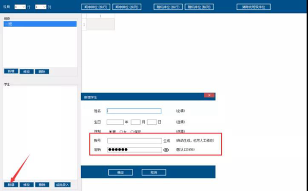本章節介紹專業版交互式數字臨摹臺的自主學習模式,老師進入班級管理,添加學生時自動生成獨立的賬號密碼(默認賬號:學生姓名全拼,默認密碼:123456),老師可以新增、查看、修改學生賬號密碼。