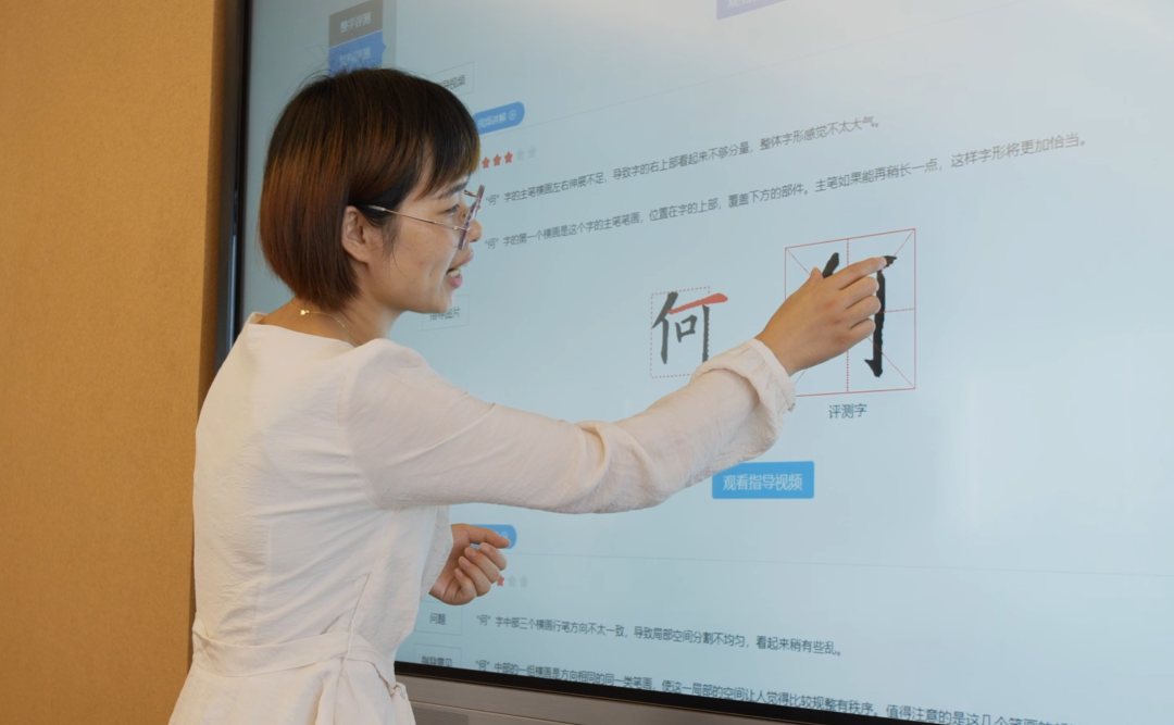 在老師教學、書法示范、學生練習環節之后,需要對學生的學習情況進行檢測和評價。華文眾合智慧書法教室借助先進的人工智能Ai技術來實現智能評價,指出學生書寫存在的問題,并給出指導意見,供學生參考學習并糾正錯誤。