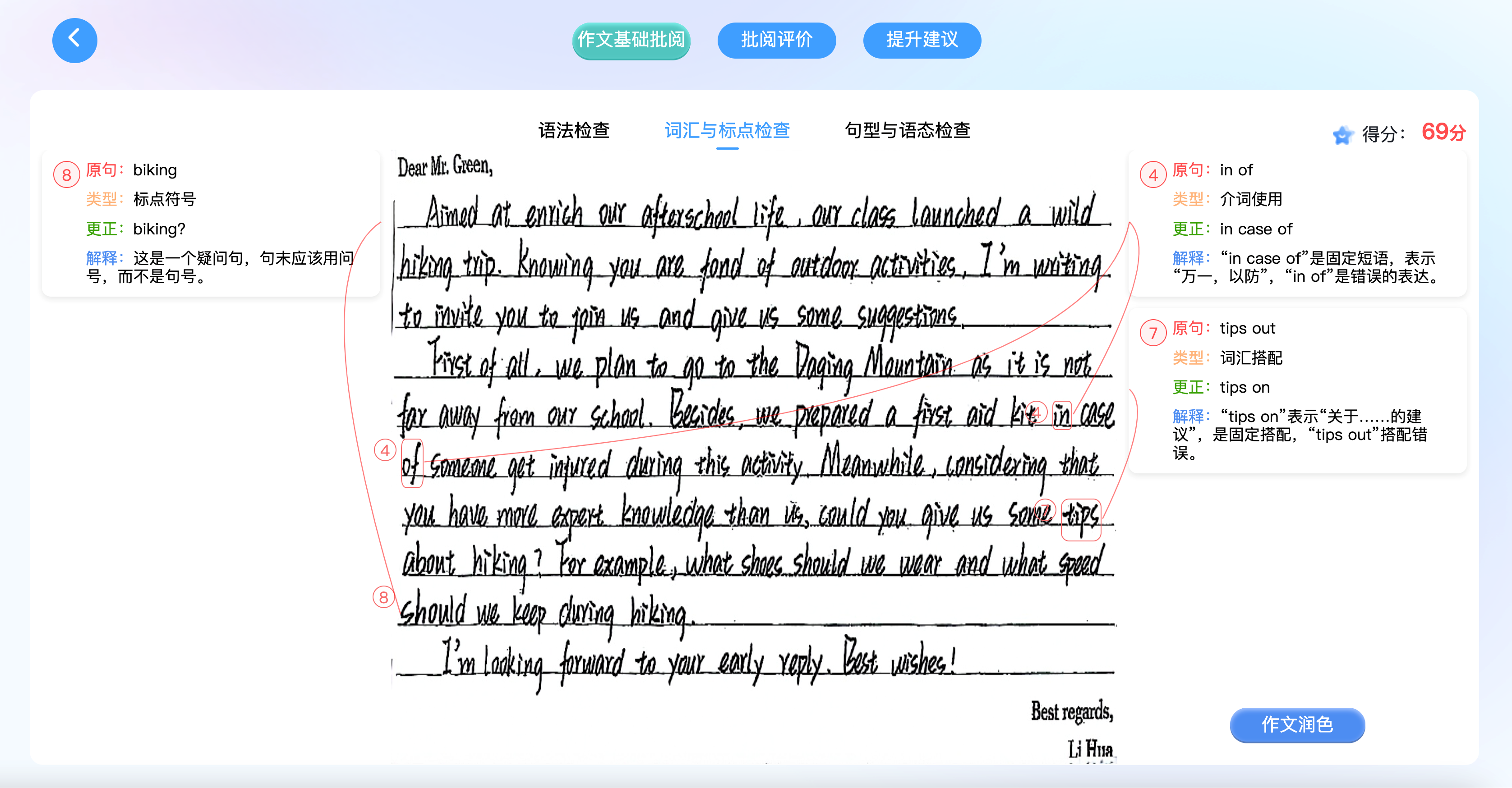 AI批閱題型覆蓋全學科客觀題、填空題、簡答題、解答題、中英文作文。實現作答即評,提供精準、個性化的批閱報告。