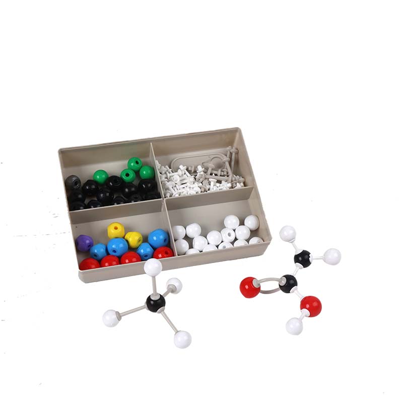 分子結構實驗盒是一套用于化學教學的拼裝式實驗器材,內含不同顏色原子球、連接鍵、連接件及收納盒。可組裝常見無機、有機分子及部分晶體結構,直觀展示分子空間構型、鍵角與化學鍵,便于學生理解結構與性質的關系,適用于課堂演示與學生分組實驗。