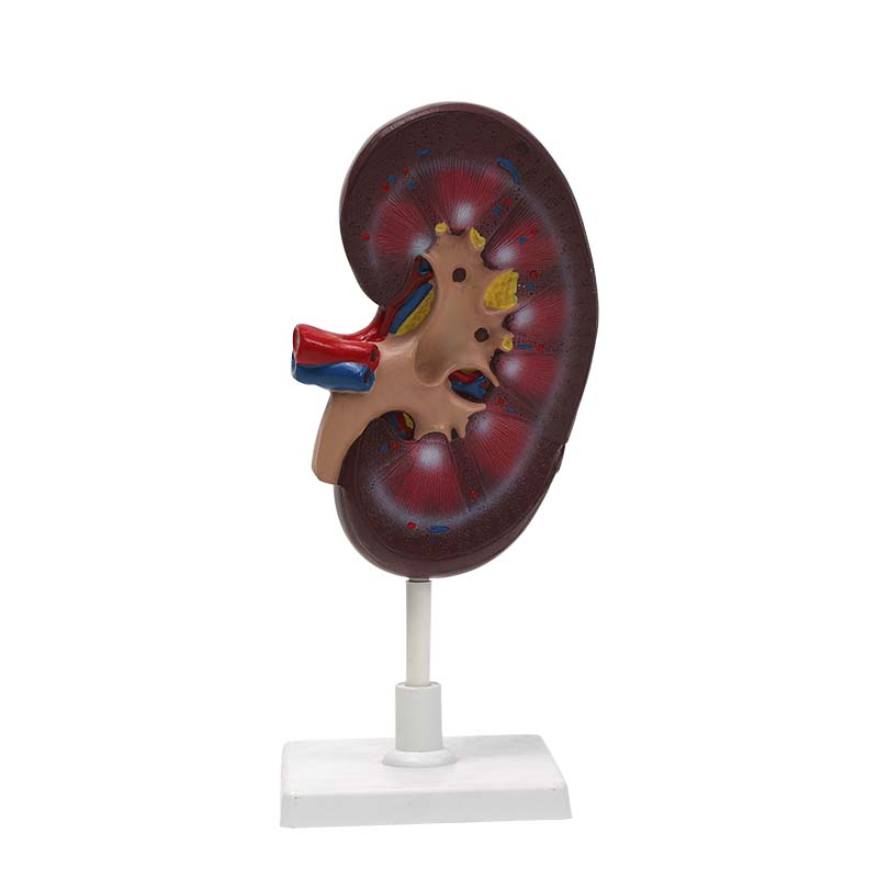 腎臟模型采用冠狀剖面設計,清晰展示腎皮質、腎髓質、腎錐體、腎盞、腎盂及腎動脈、腎靜脈等內部結構,直觀體現腎臟泌尿、過濾血液的基本構造。形態逼真、標識清楚,適用于生物課教學、醫學科普及健康教育演示。