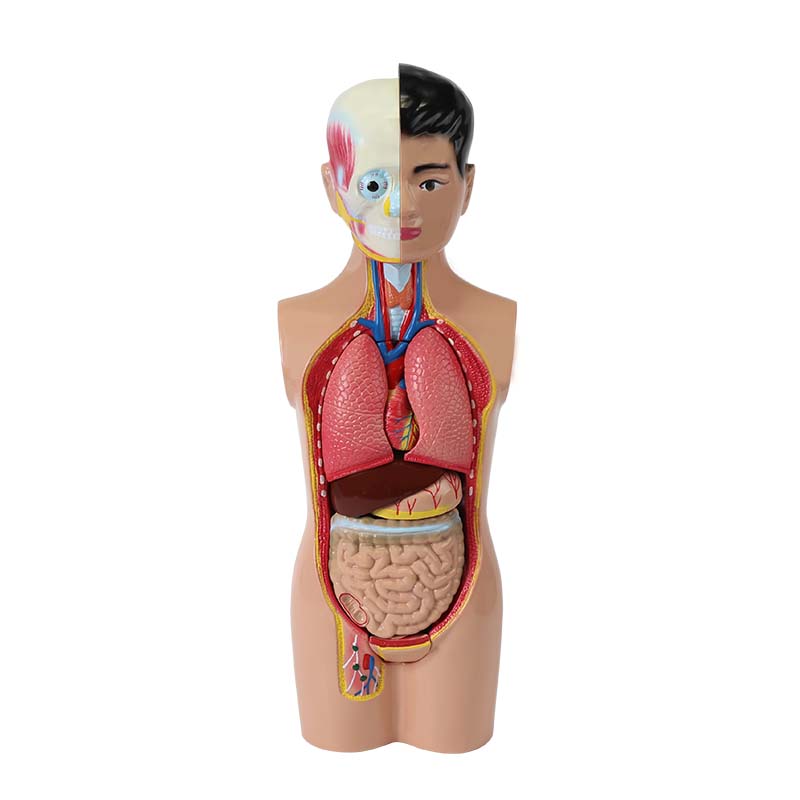 人體軀干模型真實還原人體胸、腹腔內部結構,清晰展示心臟、肺、肝臟、胃、腸、腎、膀胱等主要內臟器官的形態與位置關系,多為可拆卸設計,器官標識清晰、布局標準,適用于中小學科普、醫學護理教學及人體解剖演示。