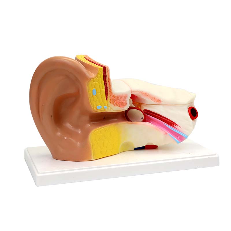 耳解剖模型按真實人耳5 倍自然大比例制作,清晰呈現外耳、中耳、內耳完整解剖結構,包括耳廓、鼓膜、聽小骨、耳蝸、半規管等關鍵部位。模型細節精準、結構分明,適用于醫學教學、生理科普與課堂演示,可直觀展示聽覺與平衡系統原理,是生物、醫學及護理教學的實用教具。