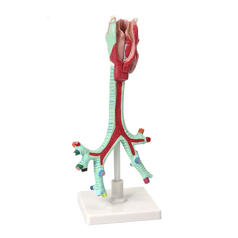 喉氣管模型清晰展示人體喉部與氣管的完整解剖結構,包含會厭、甲狀軟骨、環狀軟骨、聲帶及氣管軟骨環等關鍵部位,直觀呈現呼吸與發聲通道構造。模型結構精準、標識清晰,適用于中小學生物教學及醫學護理演示,幫助理解呼吸系統上呼吸道結構與功能。