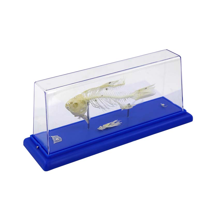 本標本為鯽魚(硬骨魚)全身骨骼標本,精準還原魚類完整骨架,清晰呈現頭骨、脊柱、肋骨、尾鰭、胸鰭、腹鰭、背鰭等全部骨骼結構。真實還原魚體流線型骨骼特征,底座穩固、形態自然。采用真骨拼接.