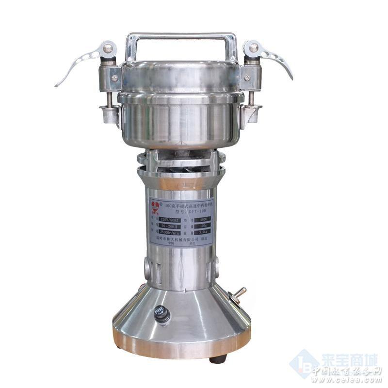 DFT-100手提式100克高速粉碎機, DFT-100手提式中藥粉碎機;是中藥店不可缺少的搗碎工具,替代傳統的搗藥臼,工作效率提高20倍;本機選用超高速電機配套,能快速粉碎各種軟硬藥材,如田七、海馬、靈芝、甘草、菟絲子、阿膠、乳香、黃芪、珍珠等,一般中藥粉碎成粉不超過半分鐘,顆塊田七粉碎(200目細度)只需一分鐘,二分鐘可將珍珠粉成白面。本機適用于中藥店、醫院中藥房、中藥加工場及相關粉末加工,更適應田七、珍珠等加工商隨身攜帶。其結構精巧、體積小、重量輕、功效高、無粉塵、清潔衛生、操作簡便、造型美觀、既省電又安全等特點。并具有裝飾柜臺的作用。 技術參數: