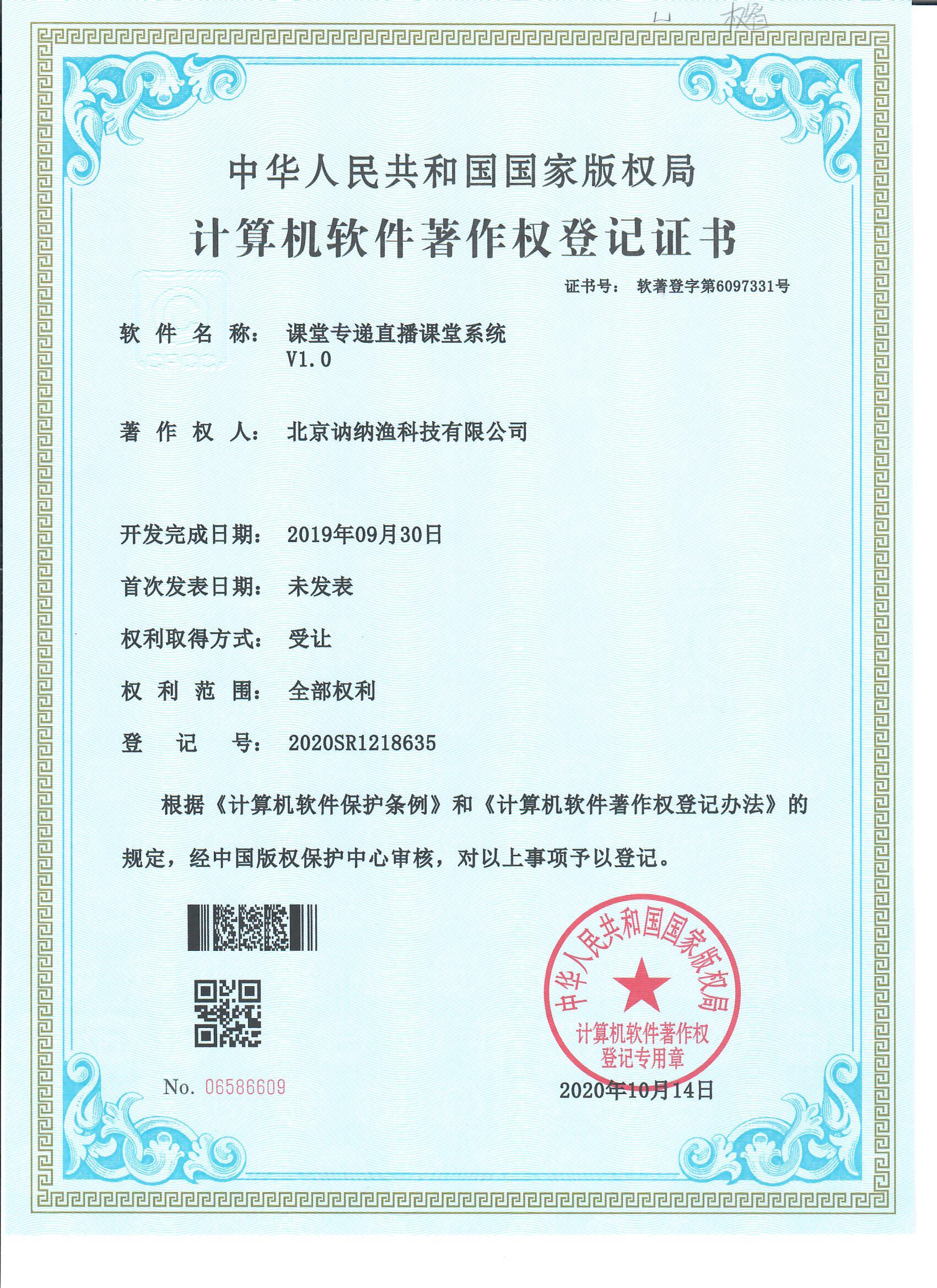 課堂系統專遞直播課堂系統著作權證
