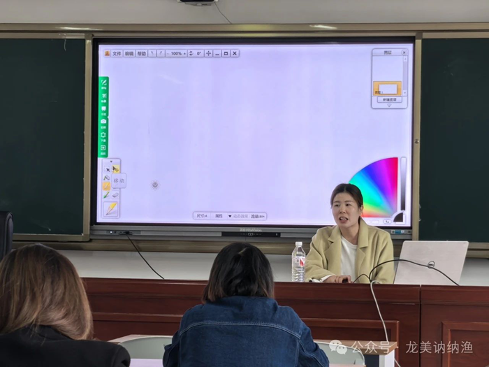 白益蘭講師正在向大家展示講解智慧美育平臺的數字繪畫功能。