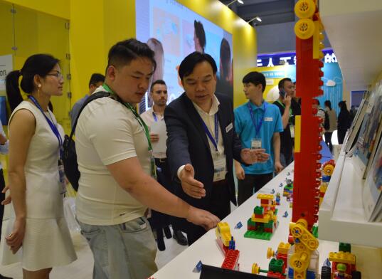 本屆展會,樂高教育主要展示兩款產品:分別是編程啟蒙小火車, 以及剛于今年4月初全球發布的、專為6-8年級學生設計的STEAM教育解決方案——LEGO®