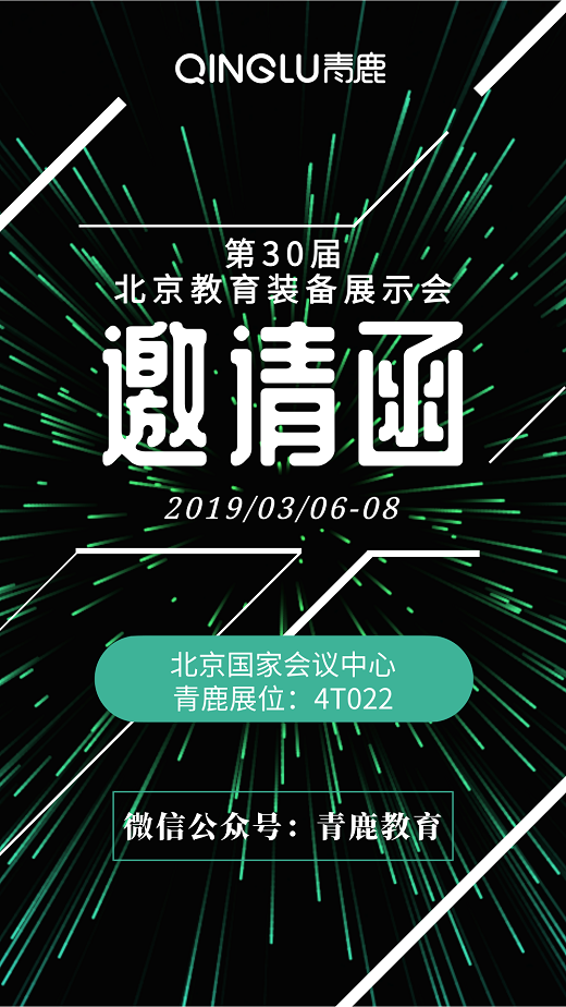 第30屆北京教育裝備展示會,將于2019年3月6日-8日在北京國家會議中心隆重舉辦,廣州青鹿教育科技有限公司將攜超強產(chǎn)品陣容亮相,歡迎領導和來賓蒞臨青鹿展位4T022。