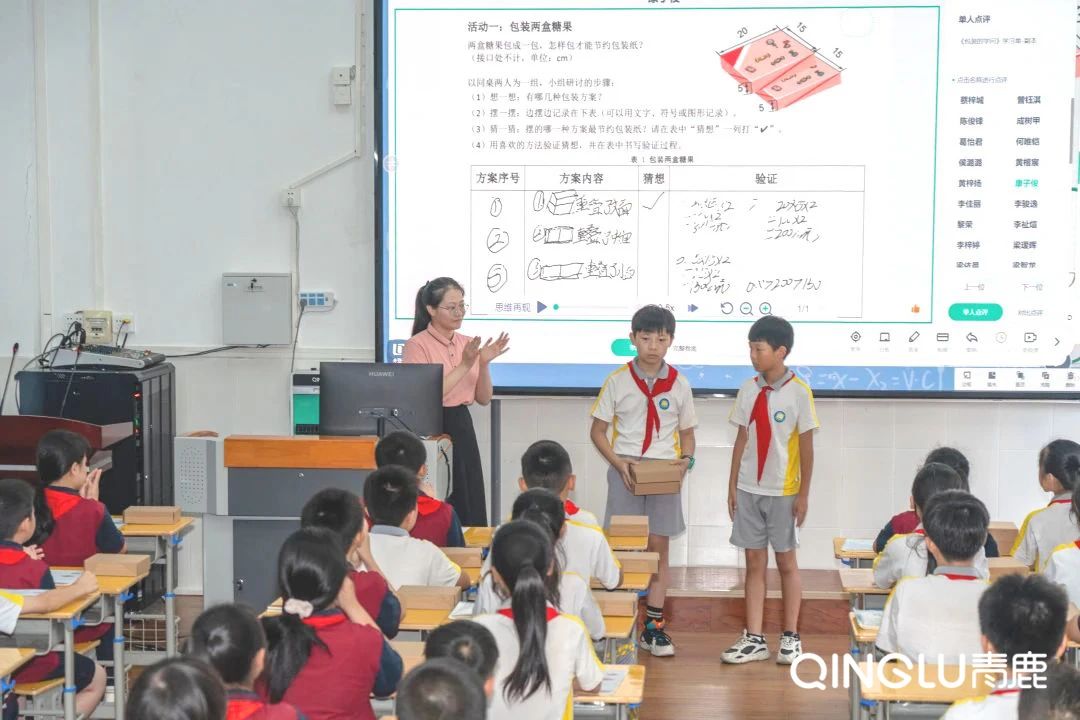 李老師借助“青鹿智慧紙筆”,通過層層推進三個教學活動,巧妙地將數學知識與現實生活相結合,引導學生利用長方體表面積的知識解決包裝問題,并滲透優化思想,培養學生的空間觀念和應用意識。