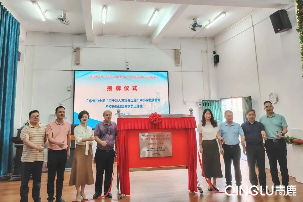 活動上,各位領導與專家們共同舉行了廣東省“百千萬人才培養工程”中小學智能教育名校長培養學員張偉良工作室的揭牌儀式,并對江南育才小學寄予厚望:“愿江南育才小學在張偉良書記的帶領下成為培育智能教育杰出教師的搖籃,成為新型教學與學習改革的試驗場,成為信息化教學研究的有效平臺,成為智能教育影響力的中心。”