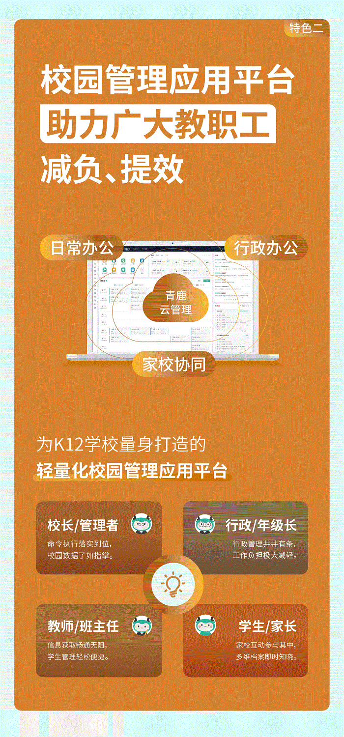 | 智慧教育信息化整體解決方案提供商,我們提供集智慧紙筆課堂、智慧錄播為一體的智慧教學(xué)環(huán)境,提供一套可廣泛應(yīng)用于K12學(xué)校信息化整體建設(shè)的開放式底層平臺(tái),為學(xué)校的教學(xué)和管理質(zhì)量提升提供支撐,賦能教育的數(shù)字化轉(zhuǎn)型。 |