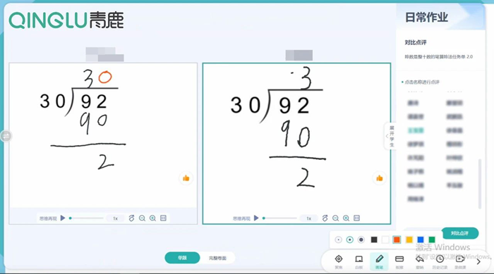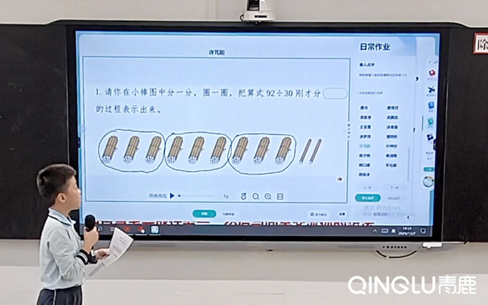 課堂上,老師使用課堂練習、倒計時、對比講評等智慧紙筆系統功能,直觀展示優秀作答、錯誤答案,讓全班學生清楚掌握本次算式的運算過程、思維過程。