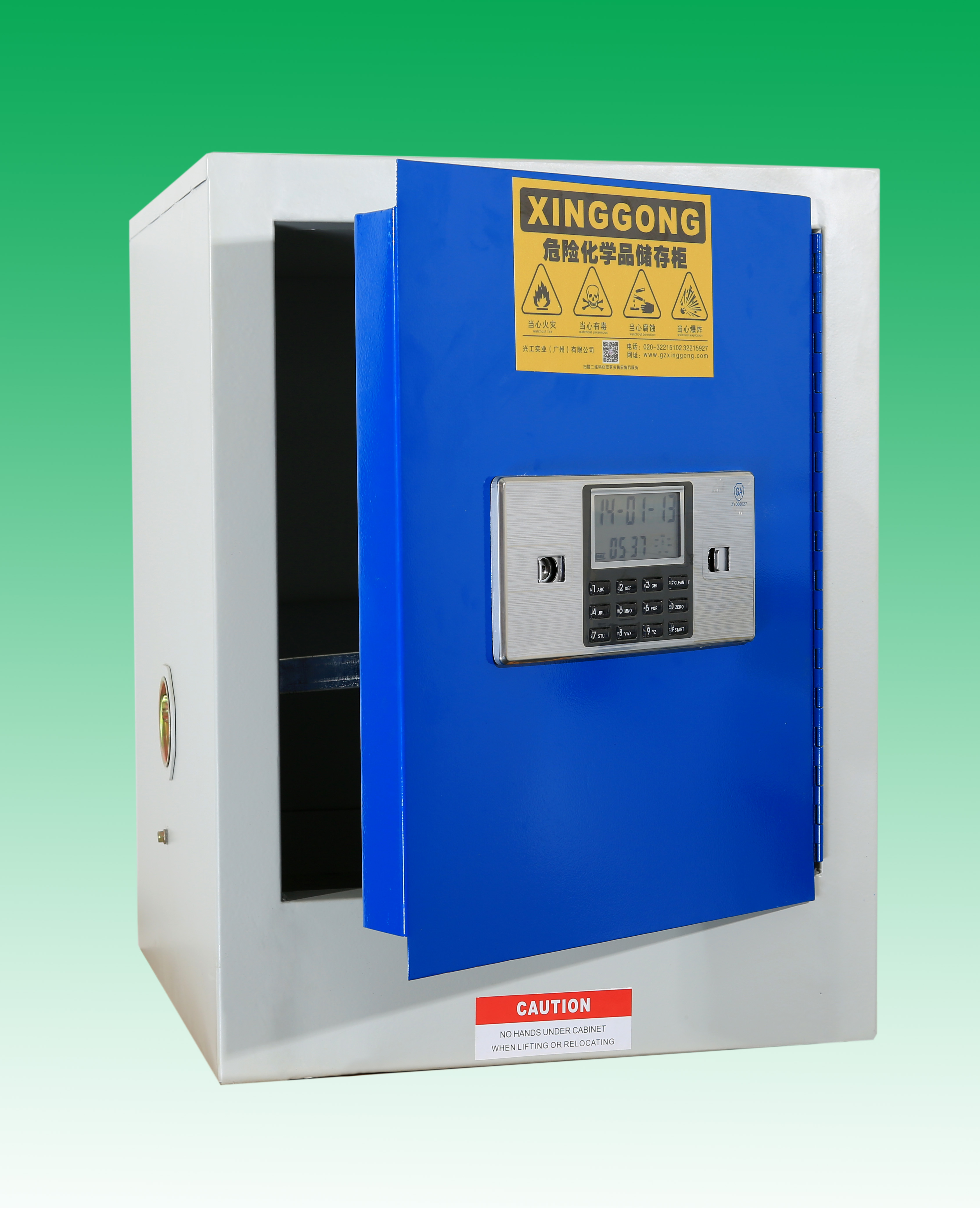易制毒試劑柜用于存放甲苯,高錳酸鉀等易制毒的危化品的安全防護(hù)用品: 特點(diǎn): 自動(dòng)報(bào)警,當(dāng)柜體產(chǎn)生劇烈震動(dòng)或密碼連續(xù)輸錯(cuò)3 次,密碼鎖會(huì)發(fā)出轟鳴聲自動(dòng)報(bào)警,報(bào)警時(shí)間將持續(xù) 30 秒左右,如想立即解除報(bào)警,輸入正確密碼即可。 1.易制毒化學(xué)品儲(chǔ)存柜全部采用雙層鋼板構(gòu)造,耐沖擊;厚度1.20mm的優(yōu)質(zhì)鋼板經(jīng)過點(diǎn)焊接,使用壽命更長,強(qiáng)度更好; 2.柜身全部酸洗磷化,環(huán)氧樹脂噴涂處理,可以耐受一定酸堿腐蝕; 3.配有電子密碼鎖和機(jī)械鎖雙鎖(另有指紋鎖,IC卡鎖可選); 4.獨(dú)特的耐腐蝕層板設(shè)計(jì),有5厘米高的防漏液槽使意外流出的液體不外溢; 5.層板可上下自由調(diào)節(jié)方便存放大小不一的危化品; 6.可選溫度控制系統(tǒng),恒溫系統(tǒng),可選柜身全耐腐蝕材質(zhì)(請(qǐng)查看我公司恒溫毒試劑柜或耐強(qiáng)酸堿毒試劑柜)。 功能: 一:符合易制毒安全存儲(chǔ)要求雙人雙鎖管理。 二:保護(hù)毒物安全,免受盜竊丟失危害。 三:可選控溫功能,保護(hù)毒物安全。 安全建議: 您可以為您的安全儲(chǔ)存柜選配通風(fēng)裝置或過濾裝置,可以將有害氣體及時(shí)過濾或者排出室外,保護(hù)工作人員安全! 易制毒試劑柜選型表:門板顏色可選:灰色 ,藍(lán) ,寶石藍(lán) : 產(chǎn)品型號(hào) 容量/規(guī)范 產(chǎn)品規(guī)格(W*D*H) XGD12F 12加侖,單門,環(huán)氧樹脂噴涂,電子密碼鎖+機(jī)械鎖580mmW*460mmD*890mmH (獨(dú)有的耐腐蝕的PP槽型層板) XGD16F 16加侖,環(huán)氧樹脂噴涂,電子密碼鎖+機(jī)械鎖 580mmW*460mmD*1120mmH (獨(dú)有的耐腐蝕的PP槽型層板) XGD22F 22加侖,環(huán)氧樹脂噴涂,電子密碼鎖+機(jī)械鎖 890mmW*560mmD*890mmH (獨(dú)有的耐腐蝕的PP槽型層板) XGD24F 24加侖,環(huán)氧樹脂噴涂,電子密碼鎖+機(jī)械鎖 1090mmW*300mmD*1120mmH (獨(dú)有的耐腐蝕的PP槽型層板) XGD300F 30加侖,環(huán)氧樹脂噴涂,電子密碼鎖+機(jī)械鎖 1090mmW*460mmD*1120mmH (獨(dú)有的耐腐蝕的PP槽型層板) XGD450F 45加侖,環(huán)氧樹脂噴涂,電子密碼鎖+機(jī)械鎖 1090mmW*460mmD*1650mmH (獨(dú)有的耐腐蝕的PP槽型層板) XGD600F 60加侖,環(huán)氧樹脂噴涂,電子密碼鎖+機(jī)械鎖 900mmW*900mmD*1650mmH (獨(dú)有的耐腐蝕的PP槽型層板) XGD900F 90加侖,環(huán)氧樹脂噴涂,電子密碼鎖+機(jī)械鎖 1090mmW*900mmD*1650mmH (獨(dú)有的耐腐蝕的PP槽型層板) |