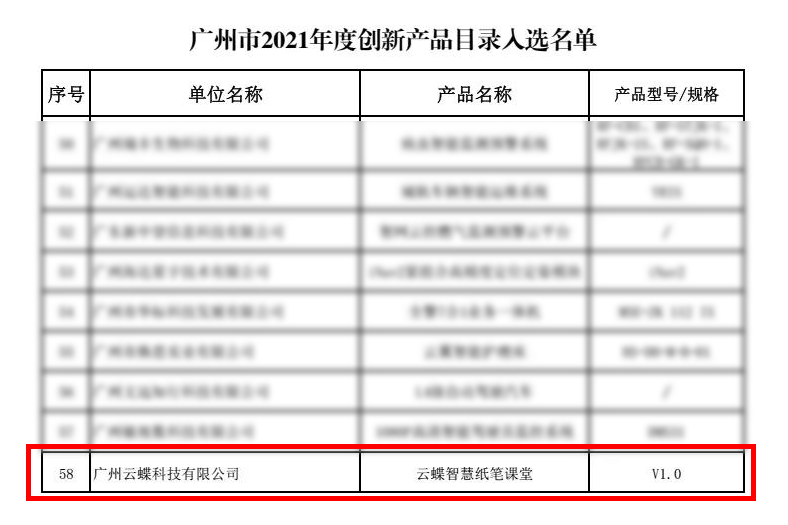 云蝶智慧紙筆課堂入選廣州市2021年度創新產品目錄