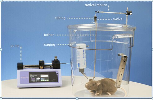 產(chǎn)品詳細(xì)介紹清醒動物自動給藥系統(tǒng)是美國Instech公司設(shè)備的主要應(yīng)用之一,主要由灌流泵(pump)、轉(zhuǎn)環(huán)(swivel)、栓繩(tether),體內(nèi)植入管(catheter),給藥管(Tubing),轉(zhuǎn)環(huán)支架(swivel mount)等部分組成。灌流系統(tǒng)可選擇單通道,或雙通道。轉(zhuǎn)镮可選不銹鋼或塑料轉(zhuǎn)镮,栓繩連接于可穿脫式馬甲,或需要外科縫合的鈕扣式外部池。 功能特點(diǎn): 實(shí)現(xiàn)動物靜脈長期,微量,穩(wěn)定的給藥 動物清醒活動,無需麻醉 一次手術(shù)后,可實(shí)現(xiàn)長期的間斷性給藥,無需重新手術(shù) 動物在不灌流狀態(tài)下,可群體飼養(yǎng),無需單籠飼養(yǎng) 通過優(yōu)化設(shè)計(jì),可以實(shí)現(xiàn)灌流給藥和采血,采膽汁同時(shí)進(jìn)行 應(yīng)用范圍: 1.正葡萄糖鉗夾試驗(yàn) 2.涵蓋所有采血與給藥實(shí)驗(yàn) 3.其他 葡萄糖鉗夾技術(shù)是一種定量檢測胰島素分泌和胰島素抵抗的方法,鉗夾試驗(yàn)已經(jīng)成為評估和鑒別β細(xì)胞對于胰島素反應(yīng)敏感性的“金標(biāo)準(zhǔn)”方法。 研究者通過血糖灌注使受試者血糖水平升高至125mg/dl(相當(dāng)于7.0mmol/l)。通過控制葡萄糖灌注使血糖水平維持在較高水平,通過檢測保持在高水平血糖情況下葡萄糖的灌注量,從而評價(jià)葡萄糖代謝率。高葡萄糖變量鉗夾可以評價(jià)β細(xì)胞對葡萄糖的敏感性。 1.Andres R, Swerdloff R, Pozefsky T, Coleman D. Manual feedback technique for control of glucose concentration. In: Skeggs LT Jr, ed. Automation in analytic chemistry. New York: Medaid, Inc.; 1966, 486–501. 2.Linda von Wartburg, “What's a Glucose Clamp, Anyway?” Diabetes Health. Nov 7, 2007. |