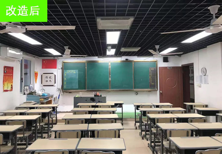 △教室改造后課桌照度為571Lx,黑板照度652Lx,優(yōu)于國(guó)家標(biāo)準(zhǔn),色溫4500K,減少眼疲勞,保護(hù)學(xué)生視力健康;