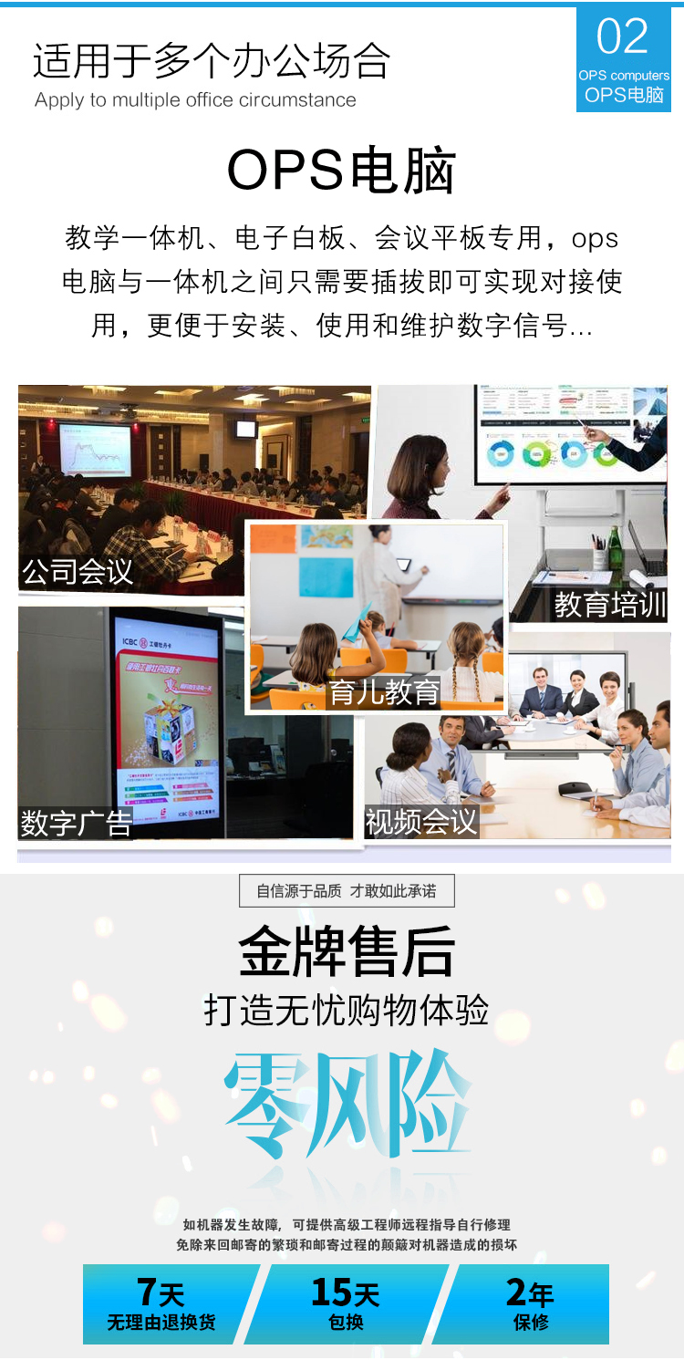 產(chǎn)品詳細(xì)介紹適配各大主流品牌觸控大屏,智能交互平板、智能會議平板、電子白板、智能交互黑板。80針 intel標(biāo)準(zhǔn)定義接口,專注各種主流參數(shù)配置與及OPS定制化服務(wù)為一體。性能穩(wěn)定,產(chǎn)品質(zhì)保1-6年。