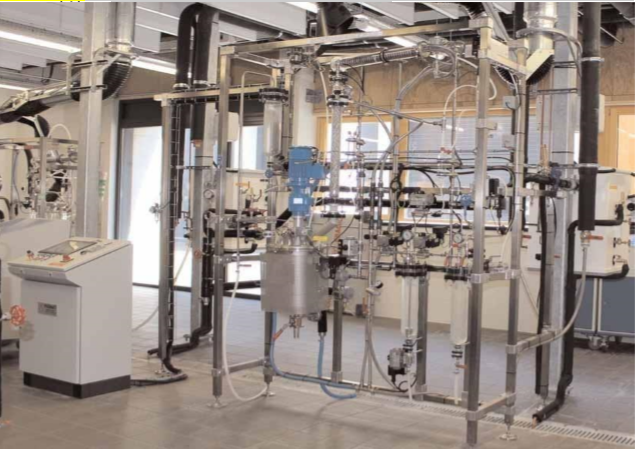 通用規(guī)范 10L,不銹鋼反應(yīng)器,帶絕熱罩,不銹鋼覆蓋,帶有pH探針,加熱和冷卻區(qū)域。 變速攪拌器。 玻璃進(jìn)料容器,3L,帶有控制閥。 玻璃蒸餾塔,ND50,不銹鋼多針織填料。 具有PTFE氣動(dòng)閥的回流分流器。 玻璃外殼和不銹鋼盤管冷凝器。 共沸潷析器。相位選擇歧管。 刻度玻璃接收器,2升,帶有控制閥,液位檢測(cè)器。 刻度玻璃接收器,2升,帶有設(shè)置閥門,排氣和排水閥。 真空回路,帶真空聚集槽,控制閥,真空泵。 帶有控制閥的冷水回路,用于反應(yīng)冷卻。 蒸汽加熱回路,帶有控制閥。 儀器儀表 溫度探針Pt 100Ω。 流量計(jì)40-400升/小時(shí)。 真空壓力計(jì):-1/0巴。 壓力計(jì)。 pH值傳感器。 配件 蒸汽發(fā)生器9kW,400伏,三相。 多用途自動(dòng)反應(yīng)釜 控制面板監(jiān)控?cái)?shù)據(jù)采集該裝置包括一個(gè)不銹鋼反應(yīng)釜,絕熱罩有加熱和冷卻區(qū)域。 這種設(shè)計(jì)允許加熱、冷卻和保持設(shè)定溫度。 固體試劑通過(guò)蓋子上的可到達(dá)的填充端口加載。一個(gè)進(jìn)料漏斗(真空下填充)用于在反應(yīng)釜內(nèi)引入液體試劑。控制閥允許以說(shuō)明為基礎(chǔ)精確加 入批量試劑或控制pH。 在蒸餾過(guò)程中,回流頭用于將回流比從零變?yōu)榭偦亓鳌_@個(gè)比率在控制面板(HMI視圖)設(shè)置。 蒸餾物被收集在2個(gè)接收漏斗中,用于自動(dòng)填充:在第一個(gè)接收漏斗上的液位檢測(cè)允許檢測(cè)容量是否滿并且切換到第二個(gè)接收漏斗。 第一接收器的管理是完全自動(dòng)化的(填充、真空、排水等)。第二個(gè) 收器是手動(dòng)的,用作緩沖器。 |