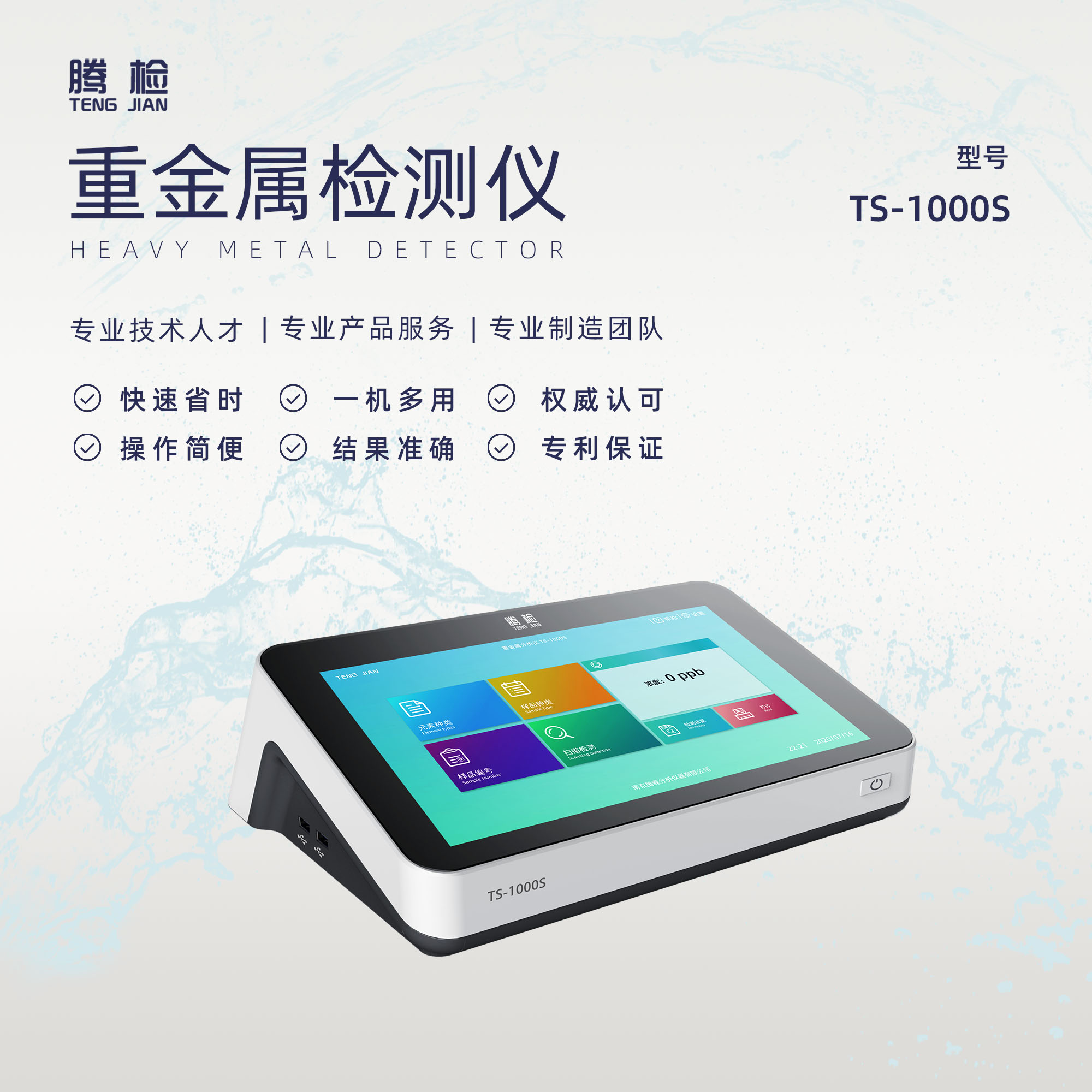 產(chǎn)品詳細(xì)介紹產(chǎn)品介紹: TS-1000S重金屬檢測(cè)儀采用電化學(xué)陽極溶出伏安法。檢出限低(可達(dá)ppb級(jí)),性能穩(wěn)定,便于攜帶。同時(shí)配備自主研發(fā)的快速樣品前處理流程,有效解決了樣品前處理耗時(shí)問題,大幅減少檢測(cè)所需的樣品量,有利于樣品處理通量的提高。配備適用自主研發(fā)的絲網(wǎng)印刷電極,即用即拋充分提高檢測(cè)效率。 檢測(cè)項(xiàng)目:鉛、鎘、銅、鋅、汞、砷、六價(jià)鉻、鋁等元素 適用范圍:稻谷、糙米、大米、小麥等糧食樣品、水產(chǎn)品、蔬菜、水質(zhì)、土壤、乳及乳制品、茶葉、飼料、面制品等。 儀器參數(shù): 檢測(cè)方法 電化學(xué) 檢出限 0.01mg/kg 線性范圍 0.05μg/L-2000μg/L 測(cè)試環(huán)境 0-40oC 檢測(cè)時(shí)間 樣品定量測(cè)試≤25min 檢測(cè)樣品數(shù)量 可1-8個(gè)樣品同時(shí)檢測(cè) 重復(fù)性 ≤5% 穩(wěn)定性 ≤5% 前處理 常溫提取,無需高溫、高壓等危險(xiǎn)操作 測(cè)試方式 微量體系,無需復(fù)雜攪拌裝置 檢測(cè)模塊 無需外部連接檢測(cè)模塊,在儀器上即可完成檢測(cè) 數(shù)據(jù)接口 以太網(wǎng)接口、USB2.0接口 檢測(cè)時(shí)長(zhǎng) 內(nèi)置鋰電池,至少滿足3-4小時(shí)戶外流動(dòng)應(yīng)急檢測(cè) 存儲(chǔ)容量 8G內(nèi)存,以便存儲(chǔ)日常檢測(cè)數(shù)據(jù) 打印 自帶打印功能 電極 自帶一次性絲網(wǎng)印刷電極,無需打磨、清洗電極,可拋棄 主機(jī)重量 ≤10kg 軟件模式 直接定量 軟件結(jié)果輸出格式 測(cè)試報(bào)告自動(dòng)生成,可輸出pdf格式,可自動(dòng)保存 主機(jī)電源 220V 顯示屏 液晶顯示屏,可觸屏操作