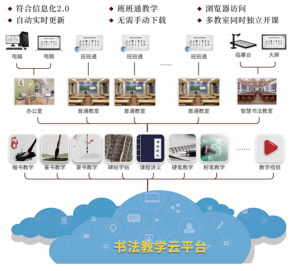 智慧書法教室、書法教學云平臺、多目書畫教學示范儀、智能筆洗控制系統、書法教學云備課