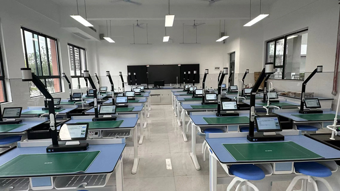 為匹配學校綜合發展的教學需求,齊魯宏博為其打造理化生考評實驗室,將實驗操作與AI相融合。形成了“AI+”的特色教學及考評模式,為學生綜合發展提供了堅實基礎。