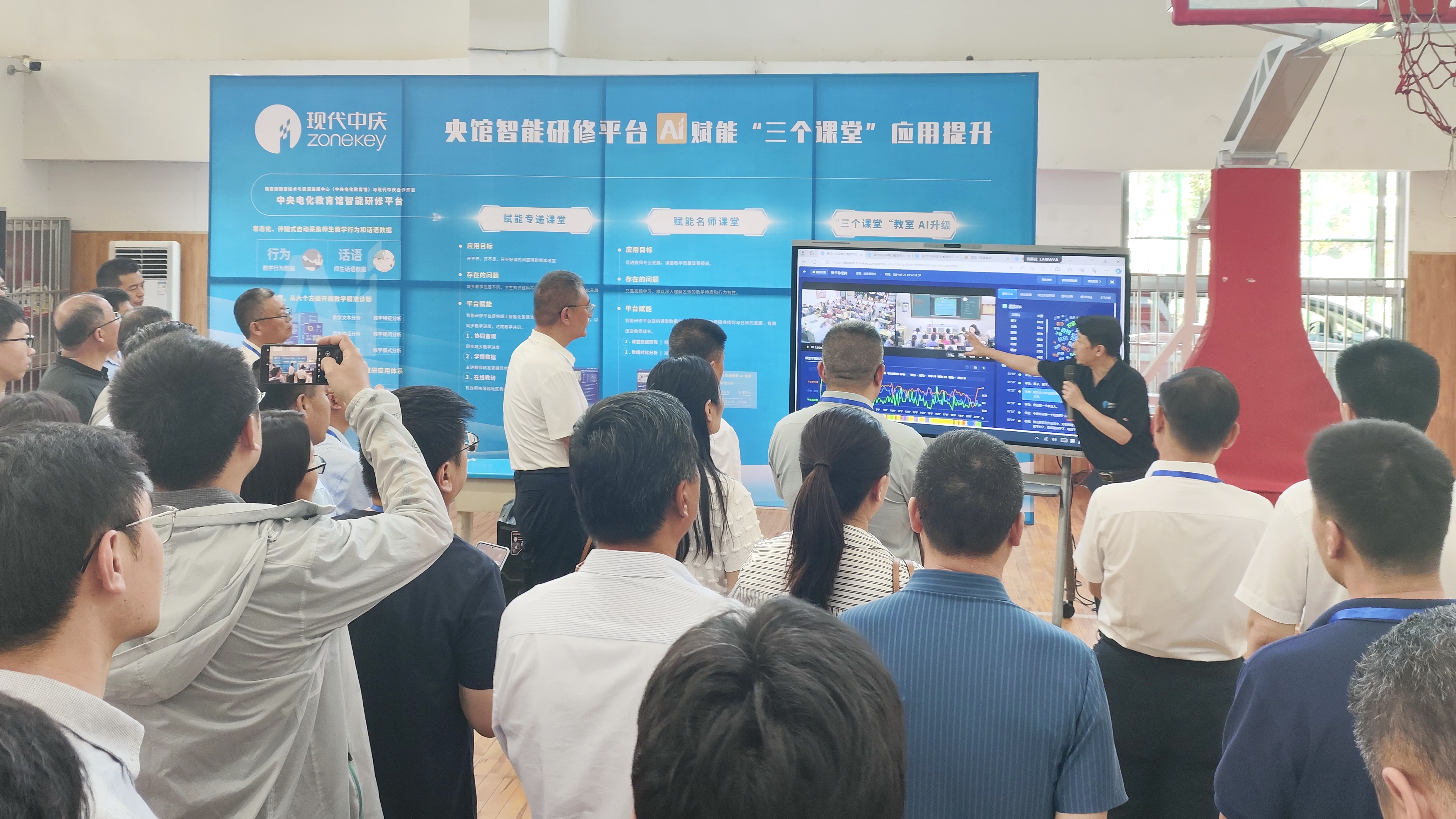 在會議現(xiàn)場展示環(huán)節(jié),現(xiàn)代中慶AI賦能“三個課堂”應(yīng)用提升方案吸引了眾多參會領(lǐng)導(dǎo)的目光。方案充分利用央館智能研修平臺的AI數(shù)據(jù)分析和“備、授、研、評”一體化應(yīng)用功能,立足實際應(yīng)用,為“三個課堂”的常態(tài)化開展和應(yīng)用提升提供了保障。