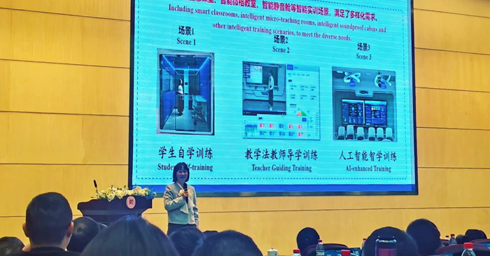 穆肅教授的報(bào)告通過華南師大與現(xiàn)代中慶共同組建的“師范生智能實(shí)訓(xùn)關(guān)鍵技術(shù)與場景示范產(chǎn)學(xué)研基地”實(shí)踐,向參會嘉賓介紹了學(xué)校探索人工智能賦能師范生教學(xué)技能高質(zhì)量培養(yǎng)的途徑和模式。