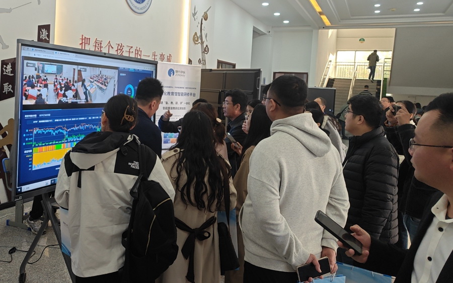 在現代中慶產品展示區,AI數據教研精準診斷的特色,以及同課異構數據對比差異清晰的體現,吸引了現場眾多參觀教師的目光。