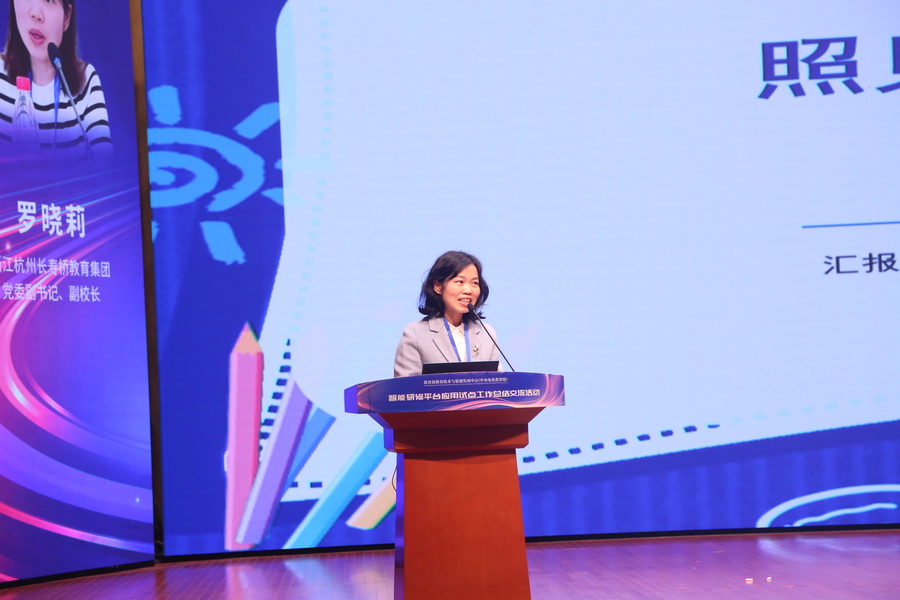 浙江杭州長壽橋教育集團黨委副書記、副校長羅曉莉的報告《照見課堂,領航成長——基于數據驅動的“鏡像”教研實踐》介紹了長壽橋教育集團如何利用智能技術,通過“鏡像”教研機制,實現教師教學全過程的實時呈現和持續改進,助力教師專業成長。
