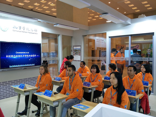 在全球孔子學院大會上,長虹不但為孔子學院獻禮了全球首間智慧教室,還為孔子學院大會的中外校長論壇、工作坊提供了智能護眼教學一體機,為現場參觀者進入漢語教學與學習提供場景,讓漢語學習與中國文化傳播變得更加容易。